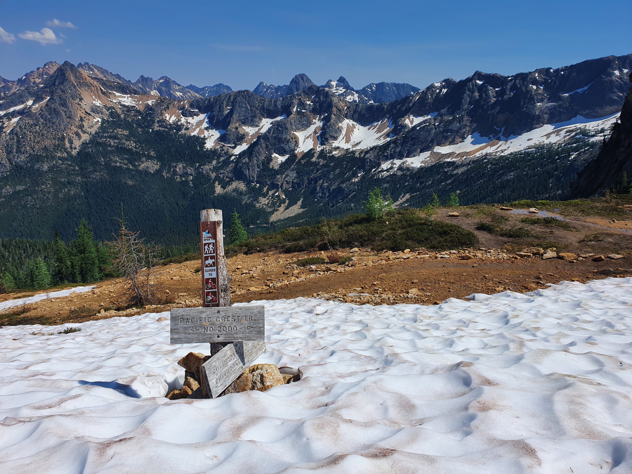 Man kann nicht zum Startpunkt fahren, sondern muss die ca. 50 km dorthin wandern. Das an sich ist erstmal kein Problem. Will man jedoch schon im Juni starten, dann kann man den PCT Richtung Start Punkt häufig noch nicht wandern. Dort ist einfach noch zu viel Schnee. Durch die Hitzewelle in Washington schmilzt der Schnee jedoch aktuell um bis zu 1 Meter pro Tag. Das wollen wir ausnutzen.