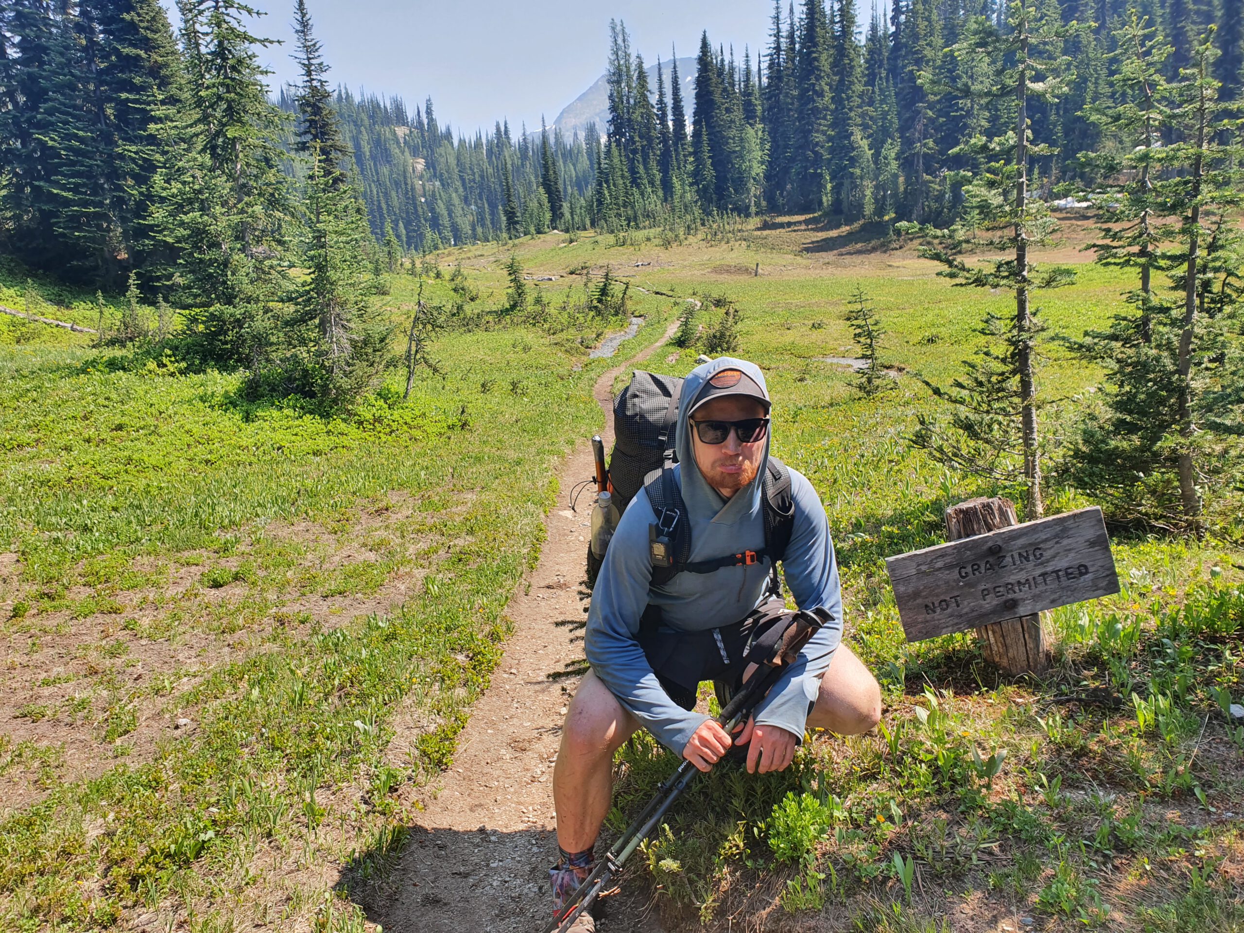Die ersten Meilen auf dem PCT, wie aufregend! Unsere Trail Family aka Tramily startet zu dritt. Zoe, die uns die Fahrt zum Hart’s Pass angeboten hat, Jared und ich. Da Pläne eh doof sind und Jared und ich und daran gewöhnt haben, dass unsere Pläne maximal ein paar Stunden Bestand haben, starten wir minimal anders als vorher geplant. Wir wollen den PCT bis zum Rocks Pass wandern, schauen wie dieser aussieht, und im Notfall den Holman Creek Trail zu unserer alternativen Route nehmen. Nach etwa 6,5 km treffen wir einen Ranger. Die Aussage: Rocks Pass sollte aktuell auf keinen Fall versucht werden zu überteuerten und der Holman Creek Trail wurde das letzte mal von ihm gewandert – vor 17 Jahren. Also zurück zu Plan A: Robinson’s Creek Trail. Immerhin sehen wir auf diesen extra 13 km einen Luchs, der sich gerade ein Erdmännchen greift. Hat sich doch gelohnt!